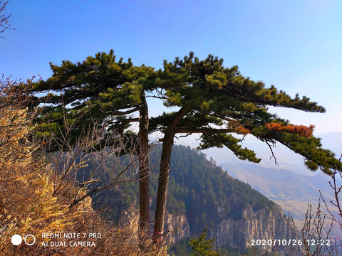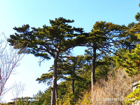 恆山松,風格別緻,形狀奇特。其中,有四株形狀奇特的唐代古松,人稱這為“四大夫格”。這四株古松,根部懸於石外,緊抓岩石,傲然挺立,氣勢不凡,別具風格。