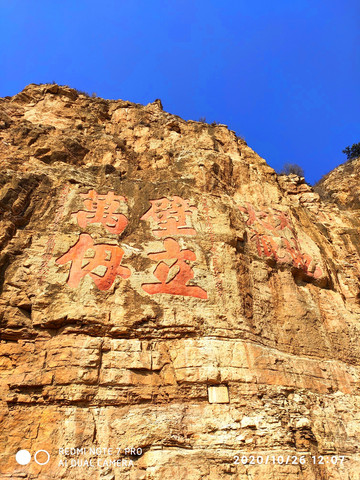 這裡的壁刻多得很,尤以明代的“天地大觀”“壁立萬仞”最為醒目,字體渾磅礴,氣勢宏偉,真稱的上是仙筆神書。