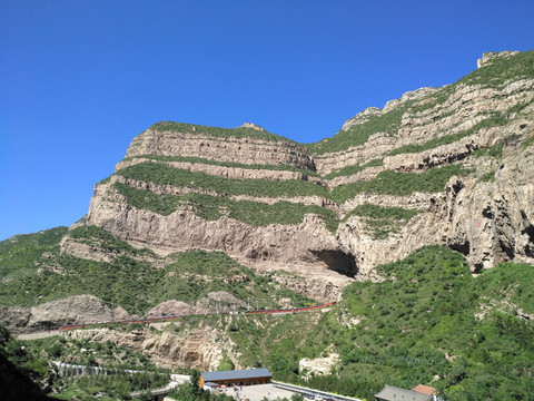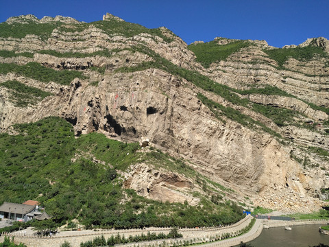 半小時後,我們經過了渾源縣城,城南10公里處,只見一座雄渾的大山突兀而起,就像巨大的屏障守護著渾源縣城。開車的師傅告訴我們,前面這座山就是著名的北岳恆山,懸空寺就位於恆山金龍峽翠屏峰,路程不遠,車子進入山區後一會兒就到了。