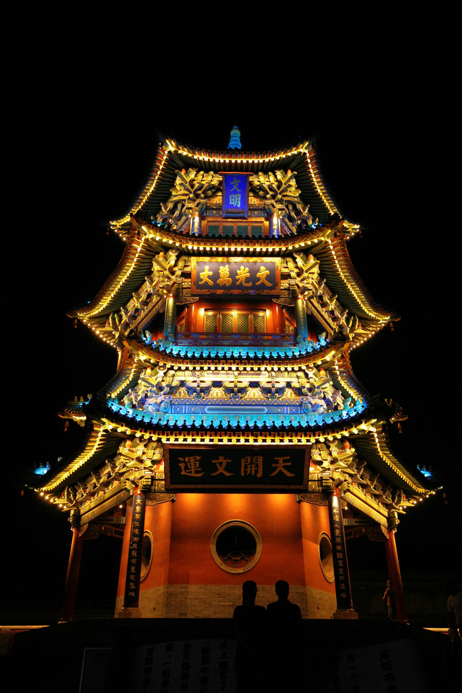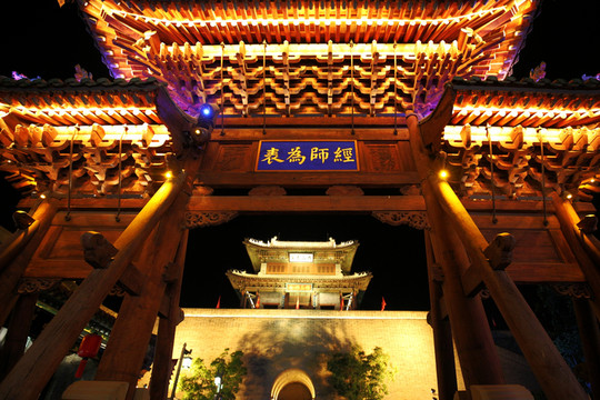 不得不說古縣城的夜色還是挺美的,不過據我的觀察,這座所謂的古縣城,應該是現代新修建的仿古建築群,裡面能夠算得上年代的建築屈指可數。
