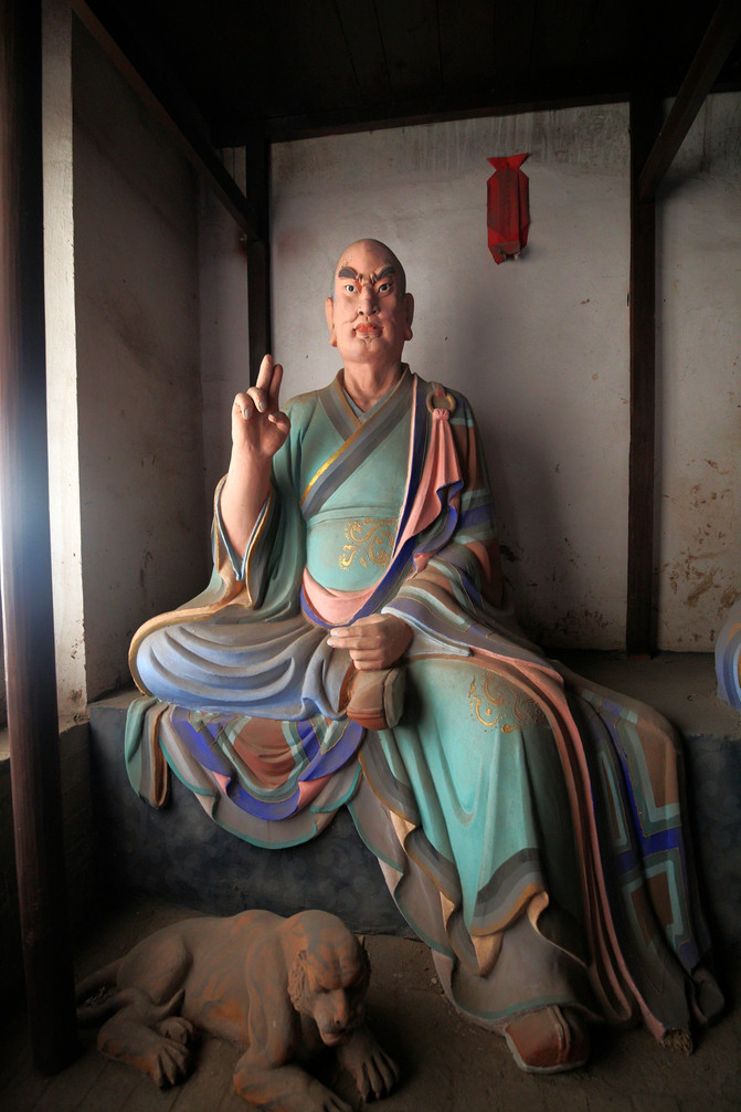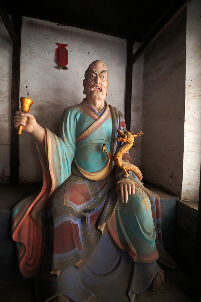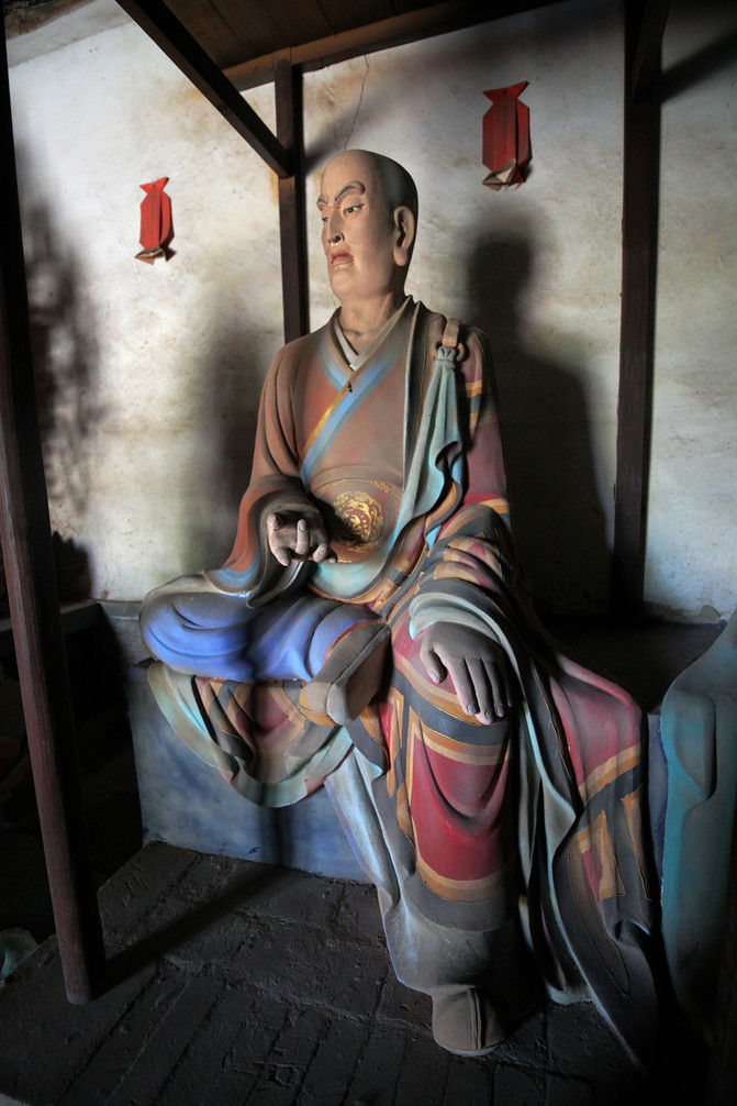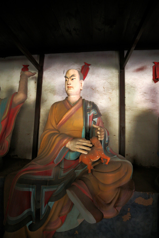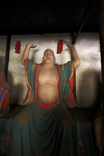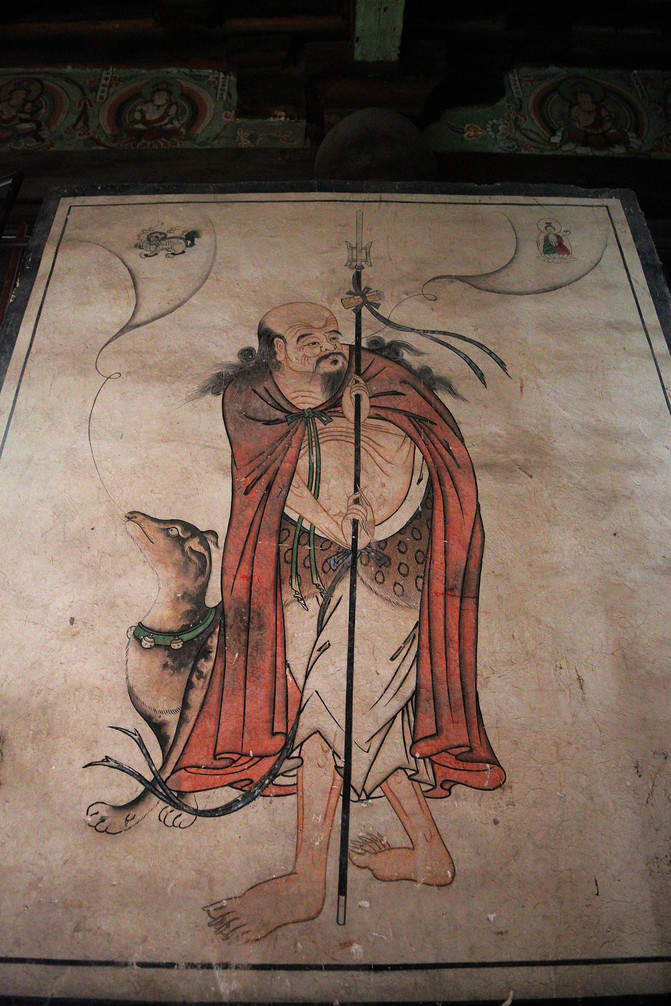 看門羅漢,相傳他到各地去化緣,常常用拳頭叫屋內的人出來布施。有一次因人家的房子腐朽,他不慎把它打爛,結果要道歉認錯。