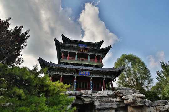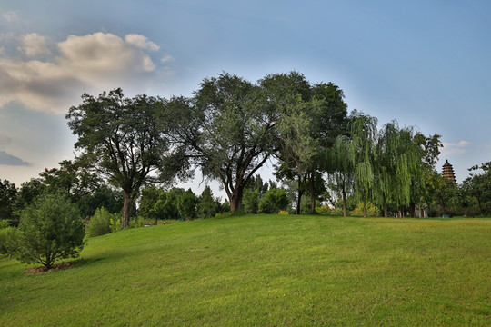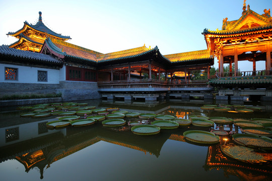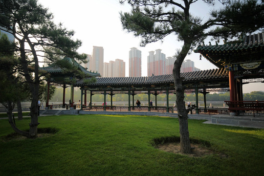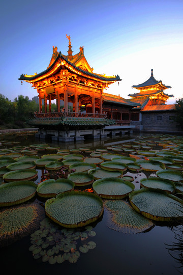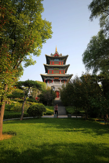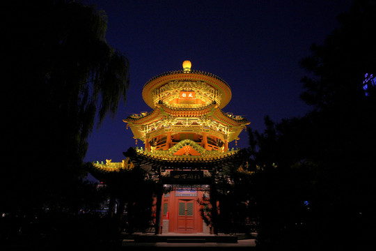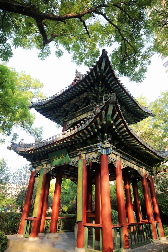 因為看見迎澤公園的古建築非常多,夜晚燈光也一定很美,於是從鐘樓街出來後,又再次來到公園,等待夜晚燈光的開啟。