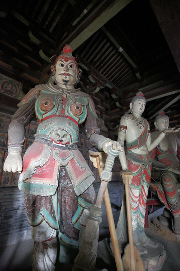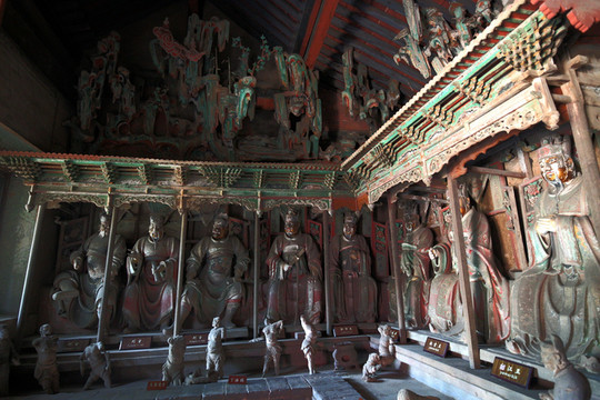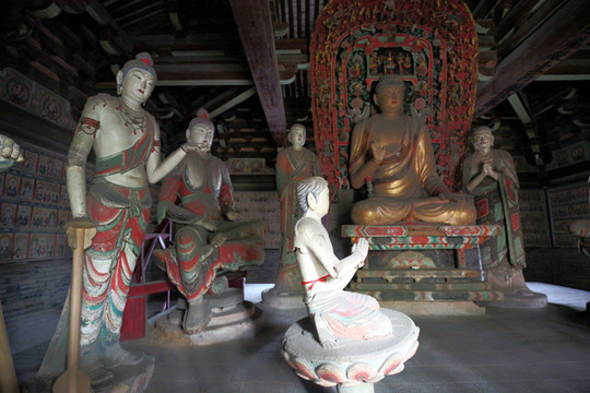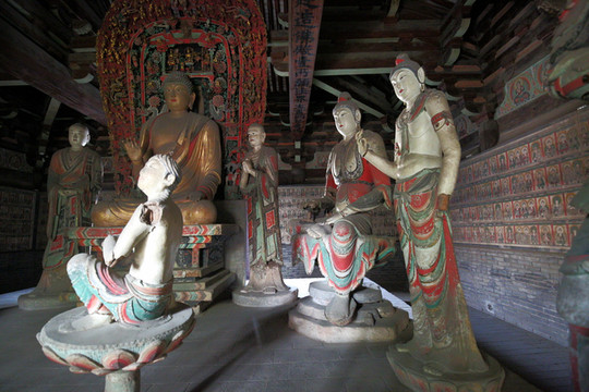 鎮國寺的建築,以萬佛殿為最早,雖經歷代多次重修,但仍保持了五代時的風貌,是中國佛教寺院中現存的三處五代建築之一,其中的彩塑,更是全國寺廟殿宇中保存至今的唯一五代作品。