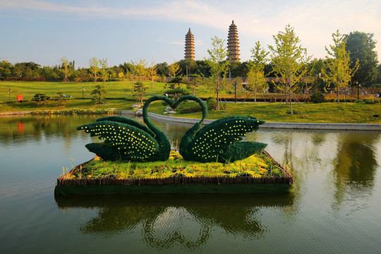 次日一早,去了迎澤公園遊玩。迎澤公園在太原的地位,相當於玄武湖在南京的地位,是太原解放後建成的第一座城市公園。