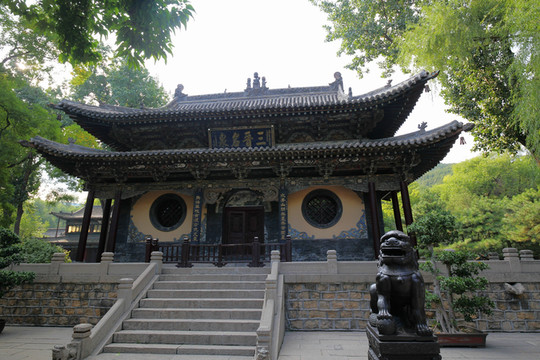 中軸線上第二進院落為正北的大雄寶殿和東西廡的千佛、菩薩二殿,佈局較為寬敞。大雄寶殿乃明初重建,是全寺中最高大的建築,簷歇山頂,樑架結構、斗拱、門窗裝飾及屋脊吻獸皆為典型明代風格。大雄寶殿即是正殿,大殿中有報身佛、法身佛、應身佛。