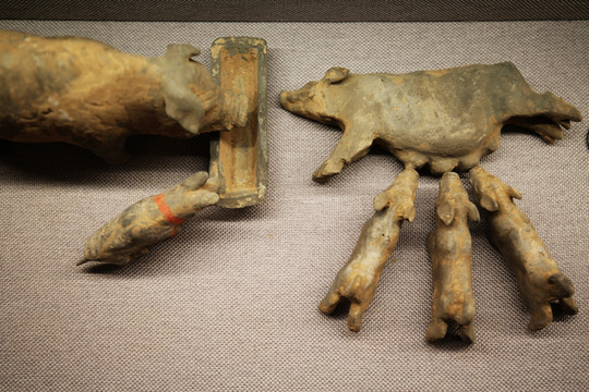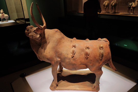 北齊紅陶牛,1981年太原市王郭村武平元年(570)婁睿墓出土。