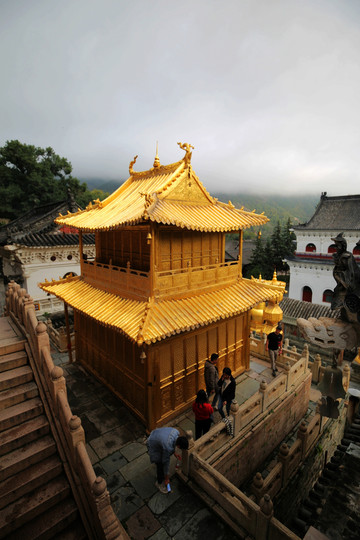 五爺廟,又稱五龍王殿、萬佛閣,是五台山香火最盛的寺廟之一。寺內供奉的五爺就是傳說中的廣濟龍王菩薩,是文殊菩薩在台懷本土化、世俗化的產物,寄託著人們祈願農作物豐收、不發生災害、家人健康、事事順遂的美好心願。民間傳說五爺本來是黑臉,但文殊菩薩為了廣濟眾生,化成了五龍王,所以黑臉變成了金臉。文殊菩薩化成的五龍王很喜歡看戲,所以在五龍王殿的對面便修了一座古式戲台,專門為五爺演戲。