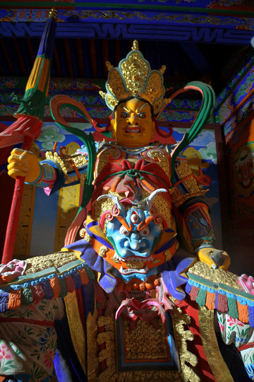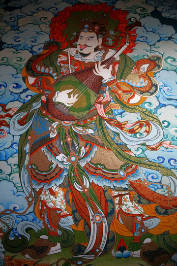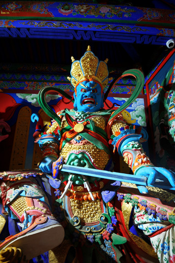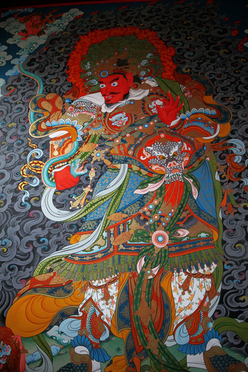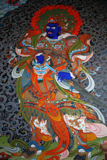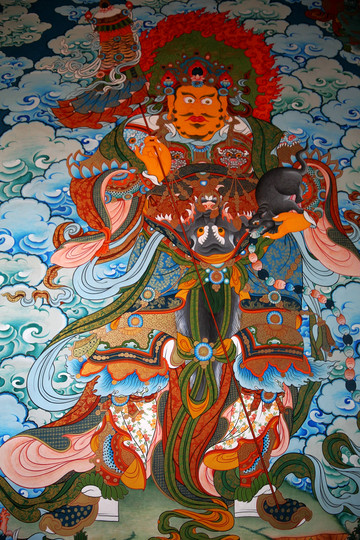 這裡的天王殿沒有四大天王的塑像,只是在牆上繪製了四大天王的畫像,與大多數喇嘛廟情況相似,繪畫很有藏傳佛教特色。