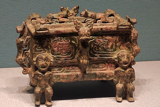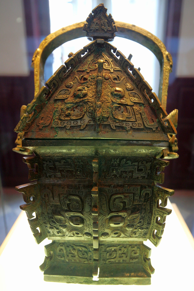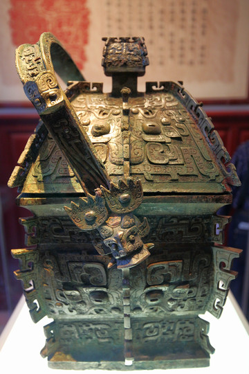 博物院的鎮館之寶——義方彝,“義方彝”與山西青銅博物館的“義方尊”一樣,均為西周早期青銅器,從同一墓坑被盜,兩件珍貴青銅器上有相同的銘文,均為“隹十又三月丁亥,武王賜義貝三十朋,用作父乙寶尊彝”。“義方彝”器身為長方體,身部微鼓,頸部和圈足飾夔紋。主體紋飾為帶雙層卷角的獸面紋;器蓋為四阿形,四面主體紋飾均為大獸面紋。器身和器蓋的四隅及正中,均帶有長鉤狀扉棱。器蓋及器底的銘文基本相同,器底的銘文比器蓋銘文多出族氏銘文“丙”。這個叫做乙的人可以說是古今晉商第一人,他投資武王伐紂,事成之後受到武王賞賜。