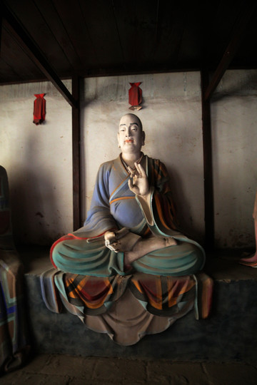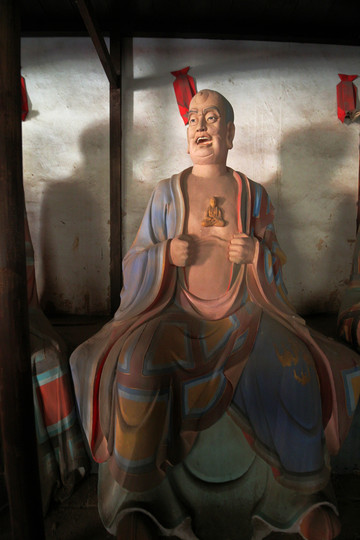 坐鹿羅漢,這位羅漢本來是印度優陀延王的大臣,權傾一國,但他忽然發心去做和尚。優陀延王親自請他迴轉做官,他怕國王囉唆,遂遁入深山修行。