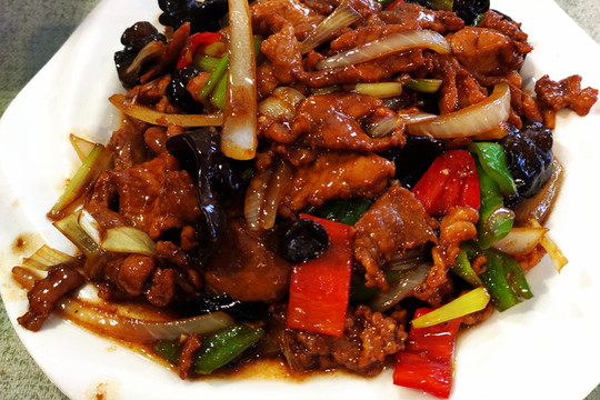 從晉祠出來已經近傍晚6點,等趕到太原古縣城時,已經傍晚6:40左右,太原日落時間大概就是6:45左右,於是找了家叫晉南印象的飯店,點了過油肉、面疙瘩,邊吃邊等待夜色降臨。