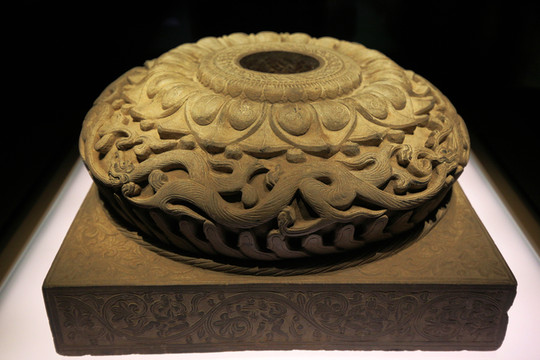 北魏石雕柱礎,1965年大同市石家寨村太和八年(484年)司馬金龍墓出土。柱礎為淺灰色細沙石質,方形底座,其上呈覆盆形,頂部高浮雕蓮瓣,中心有圓形插孔。裝飾內容吸收了佛教、西域及其他外來文化的因素,雕工精美,玲瓏脫俗,是北魏雕刻藝術品中的精品。共出土4件,大小、紋飾略有不同,是漆畫屏風(木板漆畫)的插座。司馬金龍之父司馬楚之是東晉宗室,因宮廷鬥爭而轉投北魏,娶北魏公主,被封為瑯琊王。