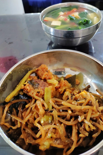 我們是從五台山的北門進入的,過了北門繼續開到集福寺下車後,已經下午2點多,在小飯店吃了遲到的午餐,然後從這裡乘坐公交車前往中心寺廟區。五台山雖然門票需要135元,但好在裡面的公交車都可以免費乘坐。