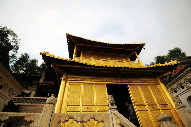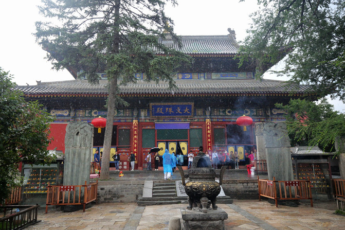 D2,太原至五台山,遊覽殊像寺、五爺廟、廣仁寺、羅睺寺、塔院寺、顯通寺、菩薩頂,住遊客中心農家客棧。