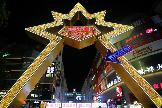 乘車來到今晚的住宿點和諧賓館,這裡離柳巷商業區非常近,放下行李休息一會後,就輕裝去了食品街。