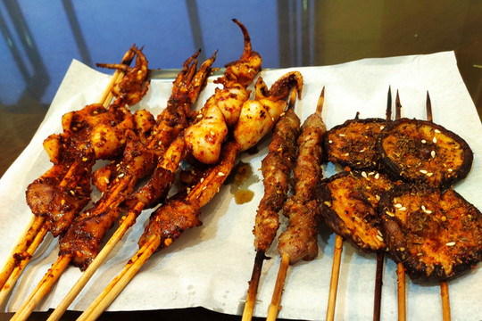 逛累了就返回客棧,休息了一會兒,然後在客棧旁邊的邱師羊肉串店點了燒烤並喝了一瓶啤酒。
