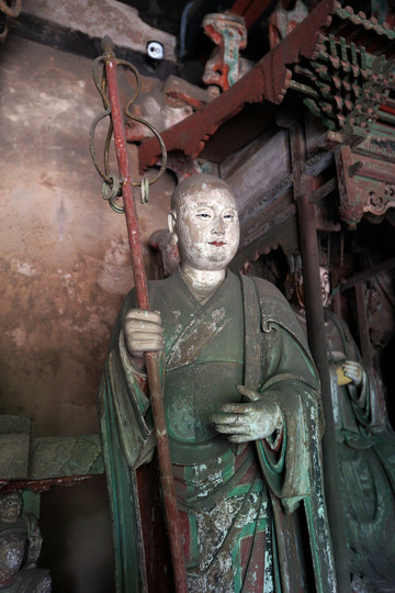 才進入雙林寺大門,心頭就一涼,只見天王殿及千佛殿被維修的腳手架包圍得嚴嚴實實,四周也圍了擋板,看來這裡的彩塑傑出代表號稱“全國韋馱之冠”的韋馱像以及最美的自在觀音像是無緣相見了。