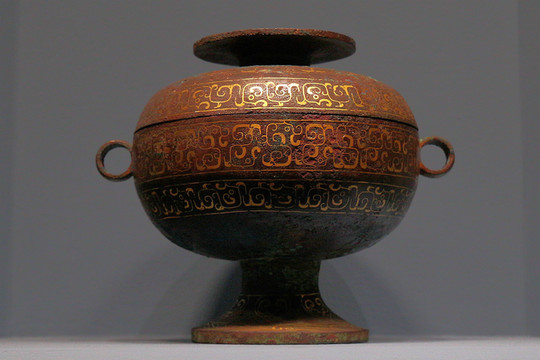 錯金銅蓋豆,山西長治分水嶺墓地出土。上世紀五十至七十年代,長治市區基建中發現了大量墓葬,其中東周墓自春秋中晚期之際延續至戰國中晚期,連貫地展現了晚期晉文化葬俗葬制的變遷。