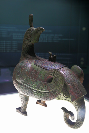 鳥尊被譽為山西博物院的鎮館之寶,博物院的院徽即為此尊,2000年出土於山西曲沃縣北趙村晉侯墓地。晉侯鳥尊,盛酒器,出土於第一代晉侯燮父墓中。其蓋內側鑄有銘文“晉侯作向太室寶尊彝”,說明該器為晉侯宗廟祭祀的禮器。