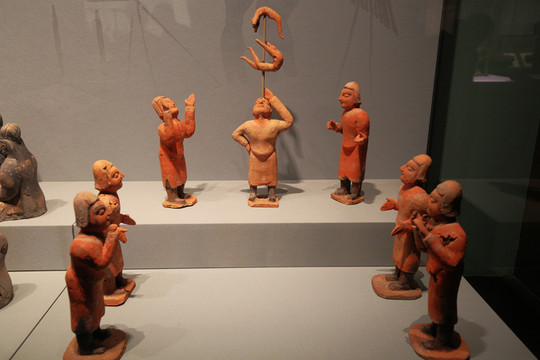 北魏雜技俑,山西省大同市曹夫樓村出土。由7件胡人俑組成,均為深目高鼻的胡人。