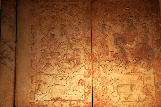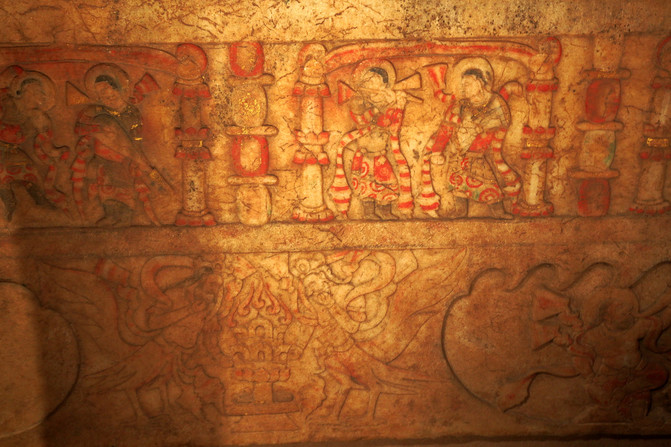 太原隋代虞弘墓,1999年全國十大考古新發現之一。出土的墓誌銘記載,墓主人虞弘為西域魚國人,19歲時出使北齊留任為官,曾在北齊、北周、隋朝歷任顯職。