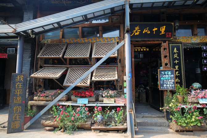 從雙林寺出來後,已經中午12點多,師傅把我帶到平遙古城北門外的四六麵館,在這裡吃了莜面栲栳栳等平遙特色。吃完飯往北門走的過程中,看見鴻泰瑞客棧的招牌,於是進去要了個單人間,在裡面休息了一會兒,就輕裝去了平遙古城。