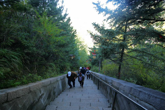 一路沿著右側山路往上爬,景色不錯,泉水潺潺,樹影婆娑,經過的這處新修的石橋,號稱御駕橋,據說當年的武則天等皇帝登山拜佛時曾經從此橋經過。