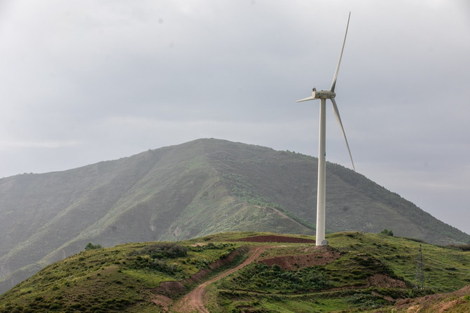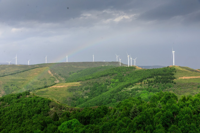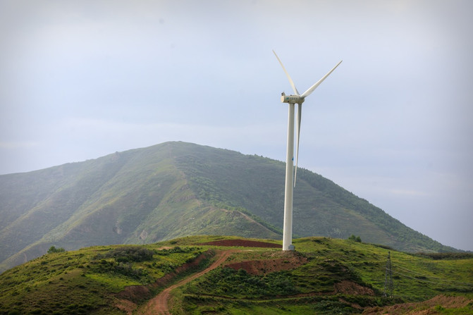 山頂有很多風力發電的裝置,緩慢的旋轉速度,讓人覺得它好像停止了,但定睛一看,它還在轉著,時間也由此緩慢下來。
