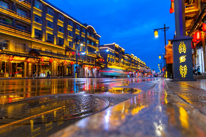 晚上8點的 山西渾源 古城,天還沒有徹底黑。改建後的古城,呈現出一派古色古香的風格。