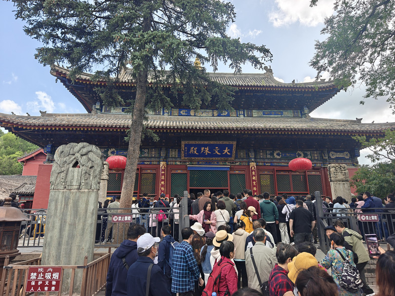 請了個導遊,帶兩個寺廟的,第一站必從殊像寺開始。主要原因是中心區的停車場就只有對面的,大是夠大了,從找車位停好車到走出來,不得花個20分鐘呀。