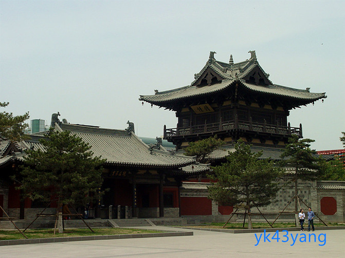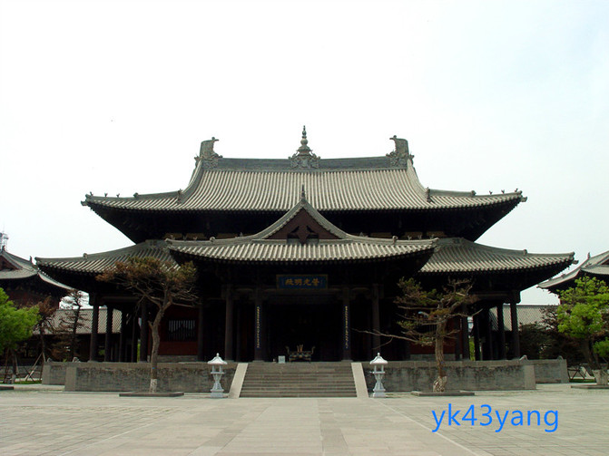 華嚴寺坐西朝東,這是契丹族人崇拜太陽的取向。新建的山門是廡殿頂的天王殿,兩邊是新建的東西偏門和鍾樓、鼓樓。
