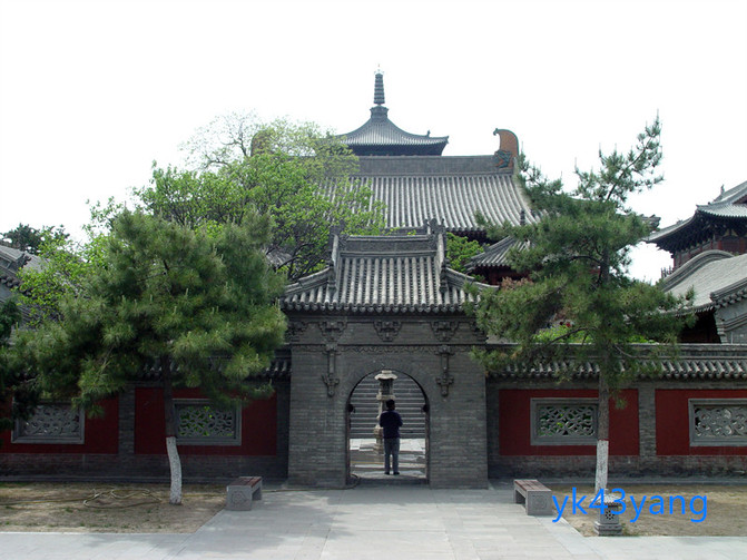 山門,過殿均為明清建築,並非這裡的看點。所以一帶而過,過殿兩側有兩道過門,外門方而內門圓。象徵華嚴宗經藏方廣,而理事圓潤。穿過過門,來到裡院。