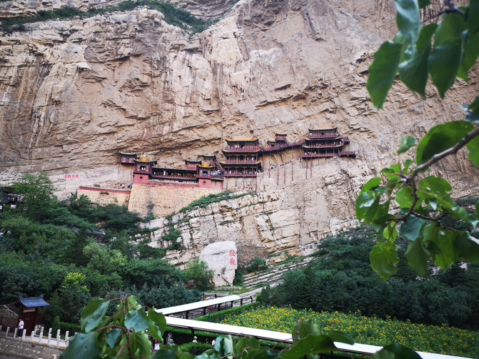 應縣木塔往西60km即是渾源縣的恆山和懸空寺,我們只去了懸空寺。懸空寺停車場分上下兩個,可盡量往上開到上面的停車場,出車場就是售票處。哪怕這沒車位還可以回來停下面的車場。進景區門票不貴,15元,但要登上懸空寺,則要另買100元的登頂票。如果帶著孩子,孩子不大的話,還是就在下面看看就行了。一來登寺要排大隊,二來上去多少還是有點嚇人的。懸空寺還是蠻有意思的一個景點,可以給孩子講講為啥下面石刻的壯觀的壯字多了一點,真的是因為詩仙李白酒醉手抖多寫了一點嗎?還有為啥懸空寺要修成懸空?真的是因為要上不著天,與天更近,下不著地,不食人間煙火?