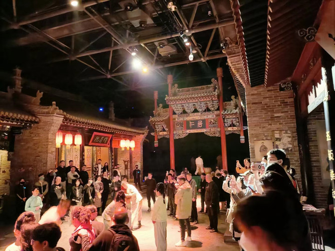 平遙還有一個重頭戲:就是觀看《又見平遙》的演出,《又見平遙》的演出不是您在台下坐,演員在台上演,而是演員就在您身邊,可以走路的地方就是舞台,也許您還感覺在逛迷宮的時候,賣炊餅的武大郎已經挑著擔子吆喝著與您擦肩而過了,再一回頭對面的屋子裡又傳出哪家小姐和丫頭聊天的聲音,這裡沒有主持人報幕,也沒有人告訴您演出開始了,但一切卻在默默的變化中,