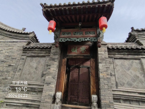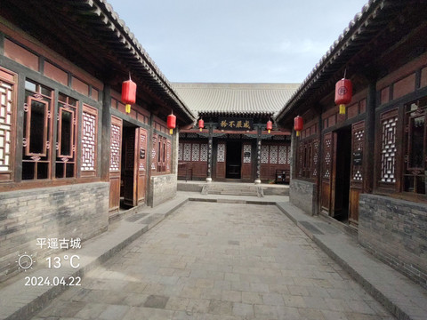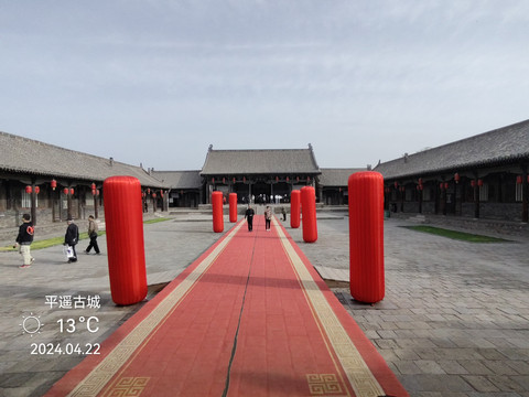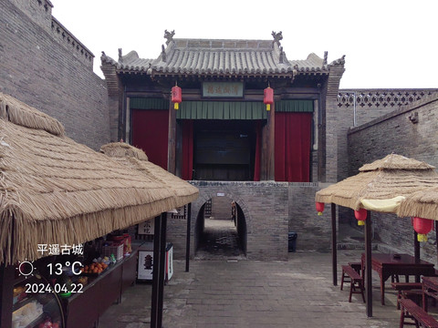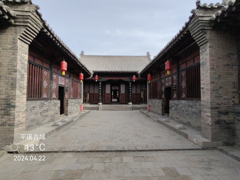 平遙縣衙,位於古城中心,佔地面積26000餘平方米,始建於元代至正六年(1346年),重建於明代洪武三年(1370年),建國後有毀有修,整座衙署坐北朝南,呈軸對稱佈局,由中軸線和東西側的建築組成,東西寬131米,南北長203米,佔地2.66萬平方米。 中軸線有大門、儀門、六部房、大堂、宅門、二堂、內宅、大仙樓;東側有土地祠、酇侯廟、糧廳、花廳等;西側有牢獄、督捕廳、十王廟等。建築對稱,主從有序,左文右武,前朝后寢。整座縣衙機構宏大,等級森嚴,既遵循了軸線對稱的傳統格局,又符合前朝后寢的禮制特徵,是封建王朝最基層統治機構的完整再現,是全國目前保存最完整、規模最大的封建縣衙,更是地方建築特色的綜合載體。