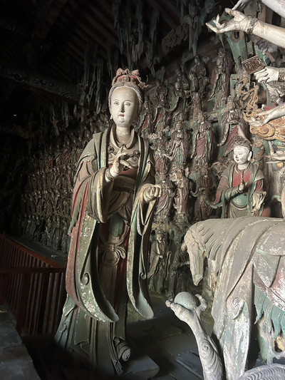 Day3:上午:參觀鎮國寺和雙林寺,欣賞佛教寺廟的精美壁畫和雕塑。中午:進入雲錦堂旅拍店,穿著晉商少奶奶妝造打卡市樓。晚上:欣賞3D燈光秀演出,返回古城內客棧。
