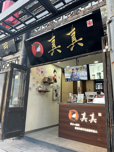 下一刻,我們按照地圖指引,目的明確的直奔西大街。穿過一條又一條巷弄後,終於來到了真真奶茶店門前。儘管店面不是很大,但卻乾淨整潔。店外招牌略顯古樸,上書“真真奶茶”四個大字;字體蒼勁古拙,隱隱透露出幾分歷史的厚重感。