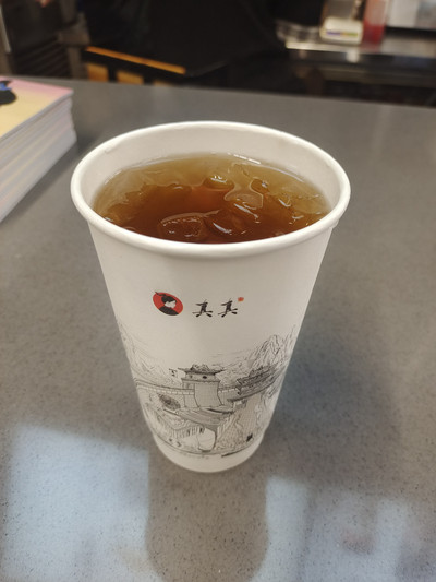 我與閨蜜找尋位置坐下,不一會兒,服務員端來了兩杯熱騰騰的奶茶。細看之下,只覺奶茶色澤明亮,上面漂浮著一層細膩的奶泡,散發出誘人的香氣。我迫不及待地端起奶茶,輕輕啜了一口。芭樂三重檸奶茶清爽可口,含有Q彈椰果。奶茶入口絲滑,奶香與茶香,又與椰果交織在一起,頓感渾身每個毛孔都無比暢快。