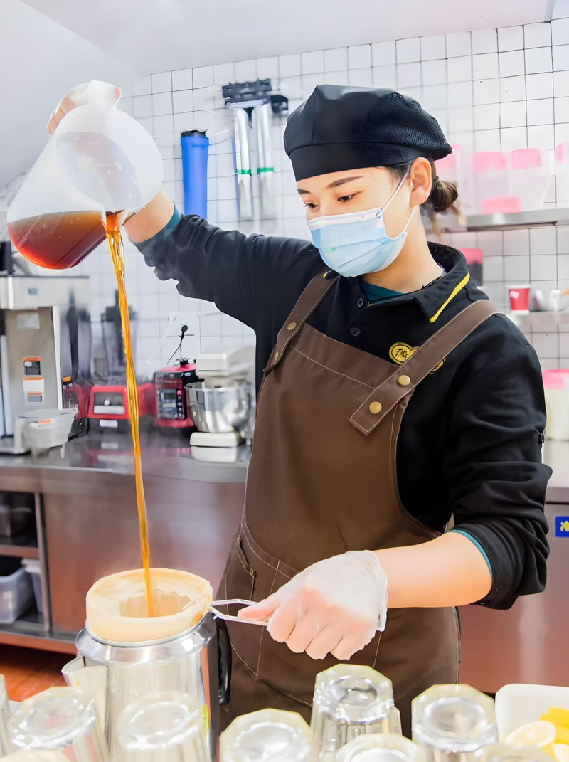 聽聞真真奶茶的歷史,我與閨蜜好奇地詢問奶茶的製作工藝。原來真真奶茶製作工藝非常講究,需要經過多道工序精心製作。首先,牛奶要新鮮、無雜質;茶葉則要選用上等烏龍茶等茶葉,以保證奶茶的口感和香氣。
