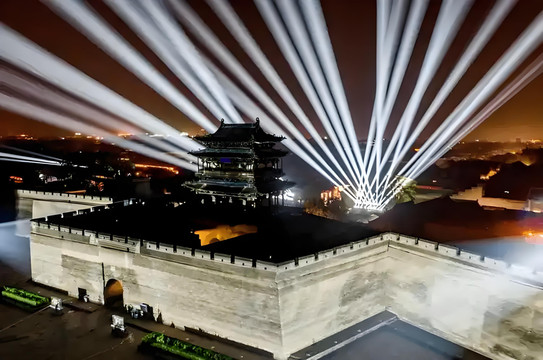 夜色在天幕上鋪陳深邃,迎薰門廣場也在神秘背景下,顯露出獨有韻味。 9時許,隨著第一縷燈光在古老城牆上跳躍,視覺盛宴最終拉開了序幕。十九分鐘的演出,不僅是光影的藝術,更是歷史與現代交織的奇蹟。每束光線,每次色彩的變換,都精準捕捉古城的風貌和靈魂,將沉睡在歲月長河中的故事,重新喚醒與演繹。