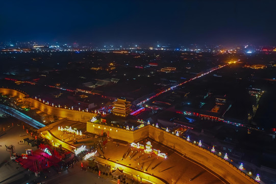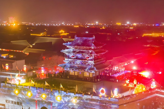 燈火輝煌的平遙古城,正是別有一番韻味。我不由地登上城牆,俯瞰著被夜色籠罩的古城。遠處的小巷裡,燈火闌珊,時不時傳來陣陣歡聲笑語。而城牆上的盞盞燈籠,也在微風中搖曳生姿,照亮了歷史車輪行進的道路。走下城牆穿行在古道上,我彷佛能感受到古城跳動的脈搏。每一處的通明燈火,好似是古城的精魂在夜空中閃爍。宛若一瞬間,我好像感覺與平遙古城建立了某種莫名的聯繫,心靈相通、相互傾訴。