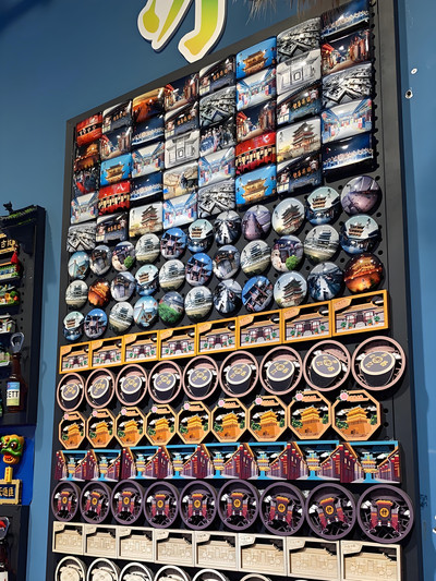 燈光秀演出結束後,我繼續沿著小巷前行;西大街店鋪林立,生意興隆,曾是明清時期繁華的商業街區之一。如今時過境遷,依然保持著獨有的熱鬧與喧囂。目光所及之處,我發現了一家古城有禮的小店。店裡滿是形態各異、精美新穎的冰箱貼。聽著店主熱情地介紹,我仔細欣賞著每個藝術品,有一種全部收歸囊腫的衝動。奈何自身財力有限,只能挑選幾種帶回家。在店主的笑語盈盈中,還透露著純真與善良。