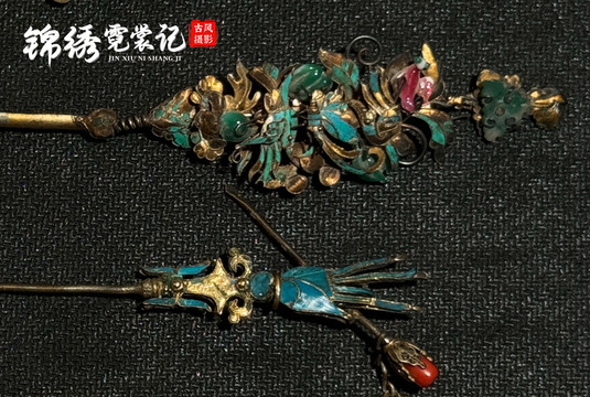 而這枚鳳簪上的掐絲和上瑯工藝,達到了爐火純青的地步,決定了鳳簪的圖案和顏色效果。親愛的朋友們,通過鎏金鑲寶琺瑯鳳簪,你們是否了解清代首飾文化,感受古代工匠的智慧和技藝了呢?歡迎小伙伴能來錦繡霓裳記,期待友友們的光臨哦! #平遙古城# #又見平遙# #平遙古城旅# #錦繡霓裳古風攝影堂# #清代古董衣# 清代古董首飾#