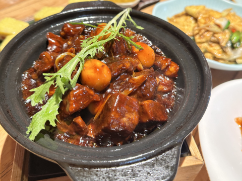 老陳醋燜牛肉:牛肉切得很大塊,但是燉得軟爛入味,裡面還有鵪鶉蛋,湯汁很濃郁,帶有一點酸味,很適合拌米飯吃~
