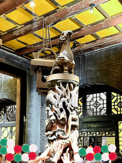 院子下面有平遙最大的地下金庫,當年儲存著數量眾多的黃金白銀,還放著一根樟木雕刻的神龍寶柱,位於古城的正中心,是平遙古城的鎮城之寶。