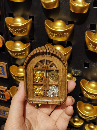 這款冰箱貼的創意來源是協同慶的地下金庫,木質榫卯結構的,裡面小銅錢的款式年代都不一樣。