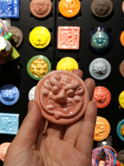 這款瓦當冰箱貼是根據平遙古建築屋簷上的瓦當描繪製作的,先燒出來再上釉,顏色很多都很漂亮。