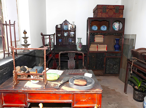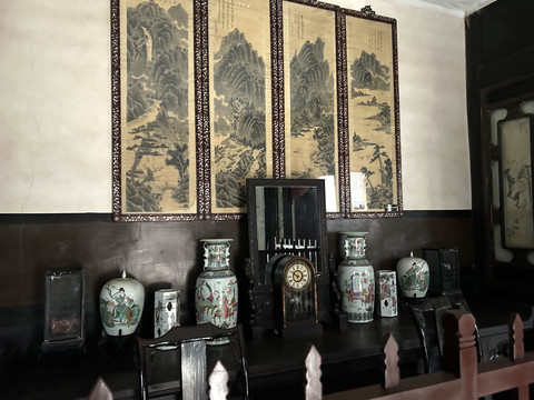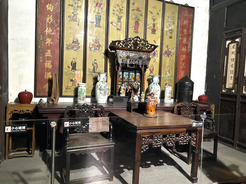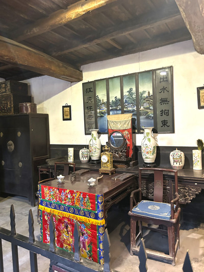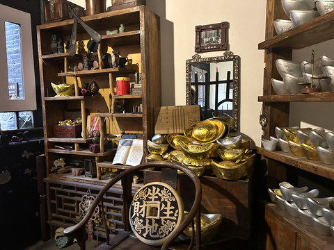 北廂房是當時的銀窖,雖然現在裡面已沒有金銀財寶;但厚重的大門、堅固的牆壁,依然能感受到銀窖的重要性、安全性。中院正廳是會客場所,如今仍按照舊時模樣擺設,桌椅、茶具一應俱全。