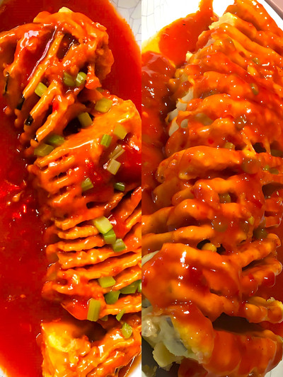 長龍茄子也是該店招牌之一,外形酷似江蘇名菜松鼠鱖魚。咬上一口,外皮酥脆,裡面的茄子軟糯香甜,醬汁的酸甜恰到好處,讓人回味無窮。無論是南方遊客還是北方遊客,都對這道菜贊不絕口。