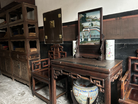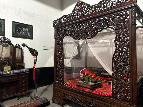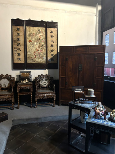 後院由佛堂、小姐閨房、家眷會客廳及正屋的家堂組成。佛堂內供奉著佛像,香煙裊裊,寄託對平安和財富的祈願。小姐閨房佈置得溫馨雅緻,雖然空間不大,但各種家具、裝飾都透露著主人的細膩心思。
